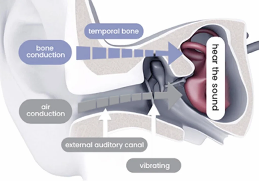 ·Conducción ósea: Transmite vibraciones a través de los pómulos hasta el oído interno.